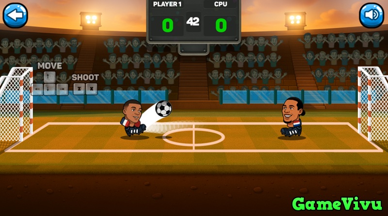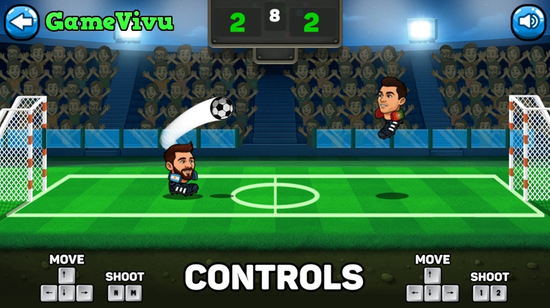 + Người chơi 2: Phím Mũi tên để di chuyển, phím số 1 và 2 để sút.