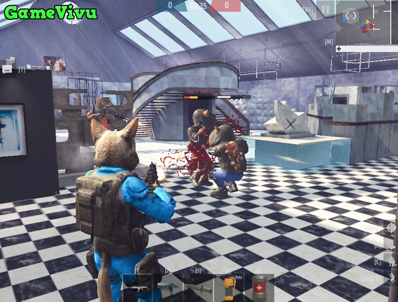 – Các phím số 1 đến 5 để chọn súng và vật phẩm.