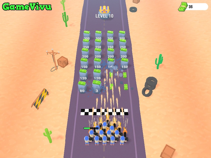 – Bắn hạ các khối trụ ở cuối đường để nhận tiền thưởng hấp dẫn.