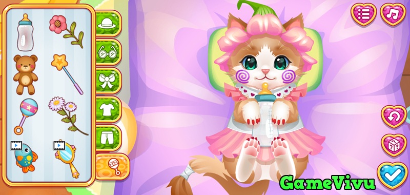 Nhiệm vụ: Chăm sóc và chữa bệnh cho mèo con bằng các dụng cụ y tế, sau đó chọn trang phục thật đẹp cho bé.
