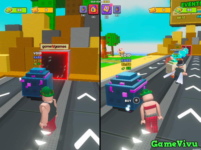+ Phím E để mua hoặc cướp, phím F hoặc Chuột trái để tấn công.