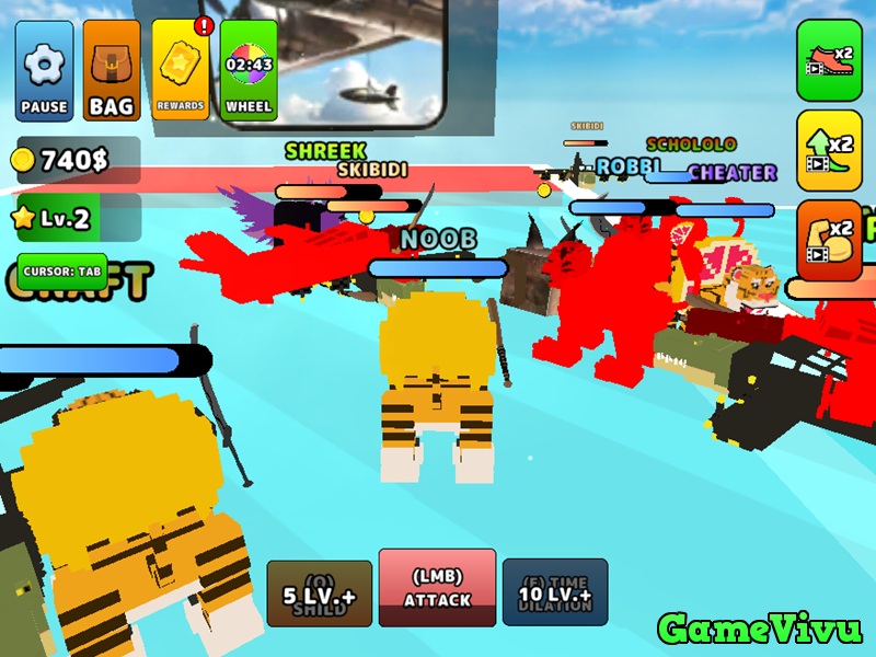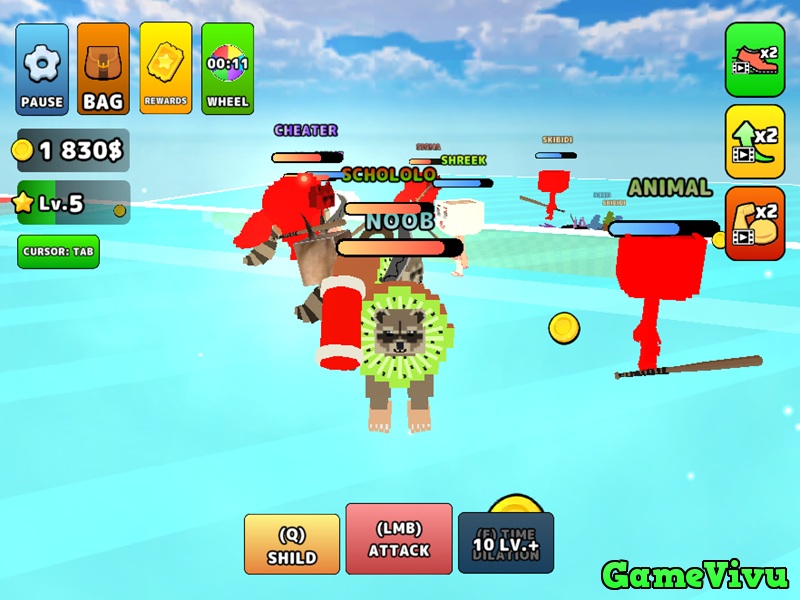 Trong Đại chiến brainrot (Pick Brainrot: 3D Battle), bạn sẽ lựa chọn một trong hai phe Brainrot và biến hình để tham gia vào những trận chiến đầy kịch tính với người chơi khác. Mỗi trận đấu là cơ hội để bạn thể hiện kỹ năng chiến đấu, đánh bại đối thủ và mở khóa những khả năng mới. Khi đạt đến các mốc level quan trọng, bạn sẽ sở hữu những kỹ năng mạnh mẽ như khiên bảo vệ hoặc làm chậm thời gian, giúp bạn chiếm ưu thế trên chiến trường.