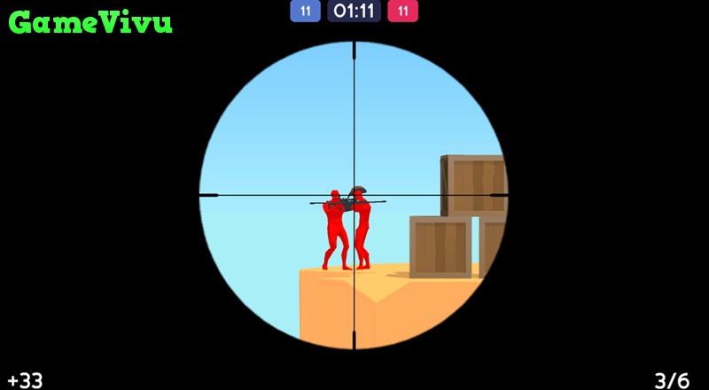 Trong Đấu súng ngắm (Red and Blue Snipers), bạn sẽ tham gia vào những trận đấu căng thẳng giữa hai phe xanh và đỏ. Trong thời gian giới hạn 2 phút, nhiệm vụ của bạn là tiêu diệt càng nhiều đối thủ càng tốt để giúp đội mình giành chiến thắng. Những pha ngắm bắn chính xác và phản xạ nhanh sẽ là chìa khóa để bạn áp đảo đối phương trên chiến trường.