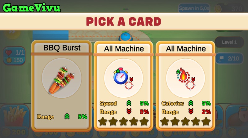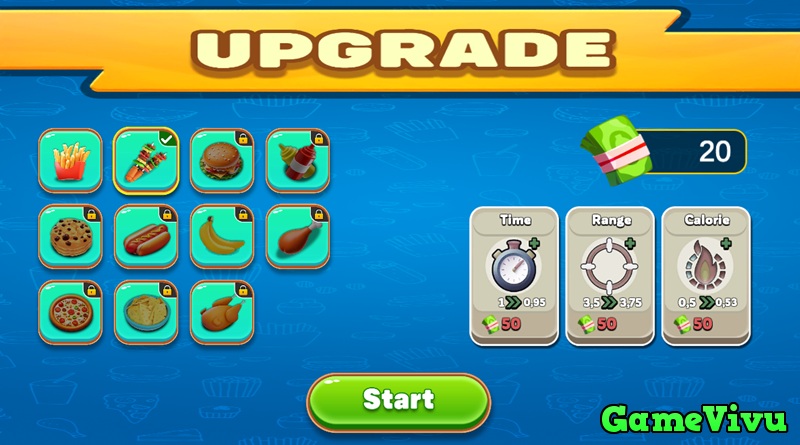 Dùng số tiền kiếm được để nâng cấp các món ăn và tăng sức phòng thủ.