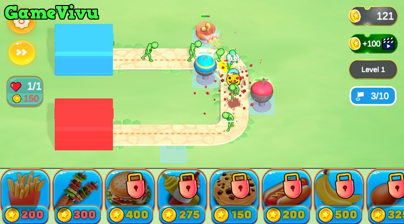 Nhiệm vụ: Sắp xếp các tháp thức ăn dọc đường đi, tiêu diệt toàn bộ kẻ địch trước khi chúng vượt qua tuyến phòng thủ và phá hủy căn cứ của bạn.