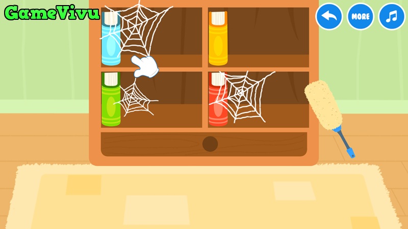 Trước tiên bạn hãy giúp gấu trúc nhỏ dọn dẹp nhà cửa thật sạch sẽ