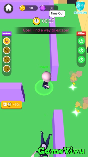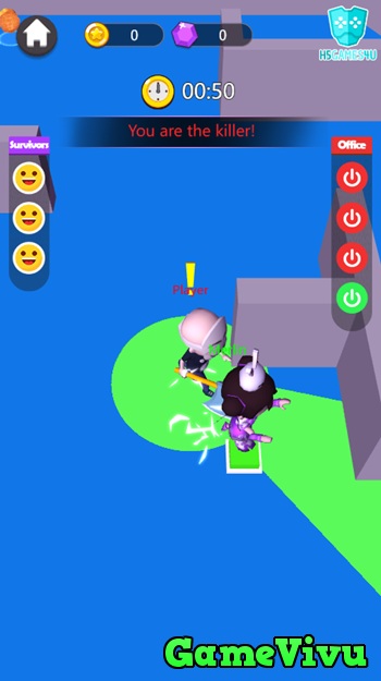 Nhiệm vụ: Nếu vào vai dân thường, bạn cần né tránh sát thủ và tìm cửa ra trước khi hết thời gian. Nếu vào vai sát thủ, nhiệm vụ của bạn là truy sát tất cả mọi người và không để ai chạy thoát trong giới hạn 50 giây.