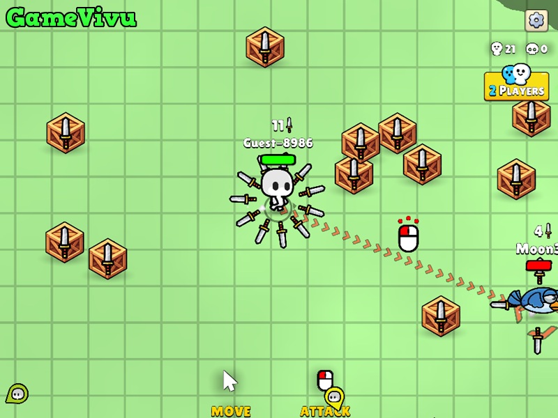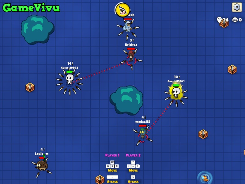 + Người 2: Dùng các phím Mũi tên để di chuyển, phím L để tấn công.