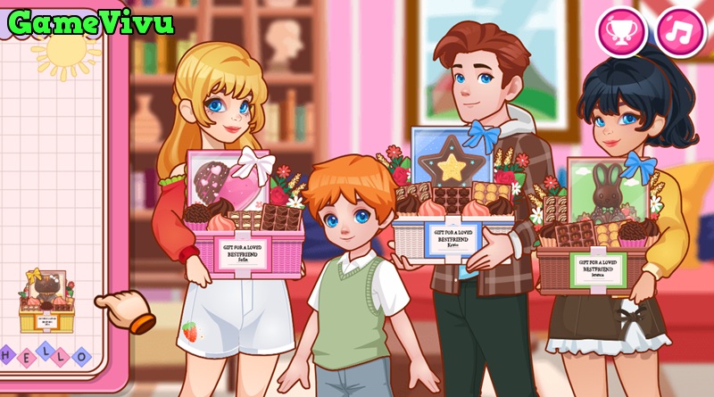Trong Làm socola tặng bạn, bạn sẽ đồng hành cùng Maggie chuẩn bị những giỏ quà trung thu đầy ý nghĩa. Maggie sẽ tự tay nấu socola và đổ vào các khuôn đặc biệt như hình trái tim, ngôi sao, chú thỏ hay chú mèo. Sau đó, bạn có thể phủ thêm các lớp socola và trang trí để làm viên kẹo trở nên hấp dẫn hơn. Khi hộp socola đã sẵn sàng, hãy đặt chúng vào giỏ quà kèm thêm bánh cupcake, hoa và nhiều loại socola khác để món quà thêm trọn vẹn. Cuối cùng, bạn còn được lựa chọn trang phục thật đẹp cho Maggie để cô ấy tự tin trao tặng món quà ngọt ngào đến bạn bè và người thân.