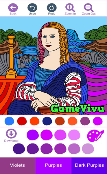 Game Love Colors mang đến không gian tô màu thư giãn, nơi bạn thỏa sức sáng tạo với hàng loạt bức tranh đẹp mắt. Trò chơi chia thành 6 chủ đề khác nhau, từ hoa lá, thiên nhiên, động vật cho đến khu vườn và thời trang. Đặc biệt, bạn còn có cơ hội tô màu những bức họa nổi tiếng như nàng Monalisa, Tiếng thét, Cô gái vắt sữa hay Đêm đầy sao theo phong cách riêng của mình.