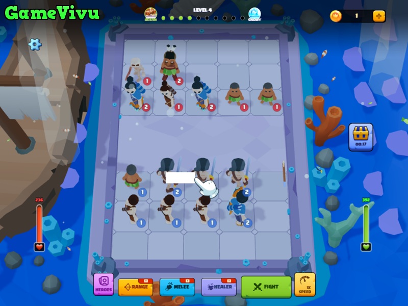 Nhiệm vụ: Hợp nhất các binh lính cùng cấp độ để tạo ra chiến binh cấp cao hơn, bố trí đội hình hợp lý và tiêu diệt toàn bộ kẻ thù.