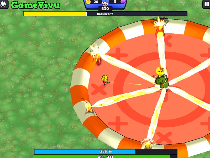 Nhiệm vụ: Tiêu diệt các đợt quái vật để sinh tồn, thu thập năng lượng lên cấp, lựa chọn kỹ năng phù hợp và đánh bại boss cuối màn.