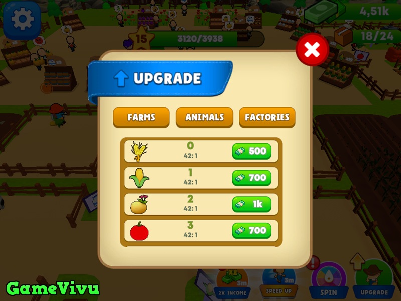 Dùng số tiền bạn kiếm được để nâng cấp trang trại và thuê nhân viên làm việc.