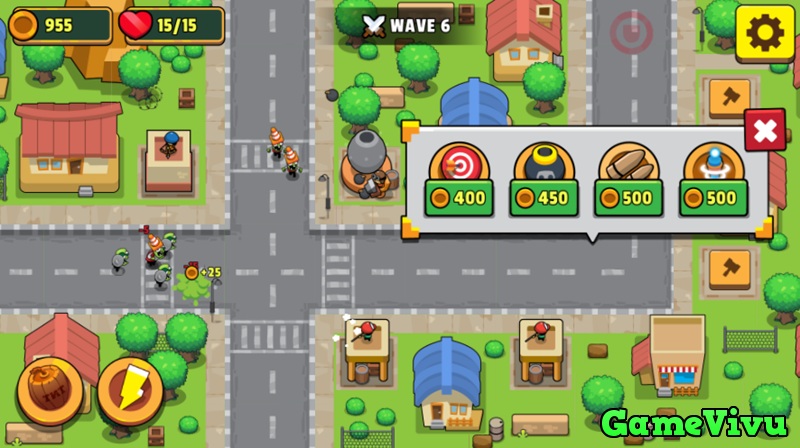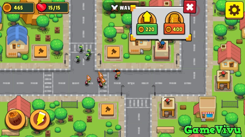 Nhiệm vụ: Xây dựng và nâng cấp tháp để ngăn chặn lũ zombie xâm nhập khu phố.