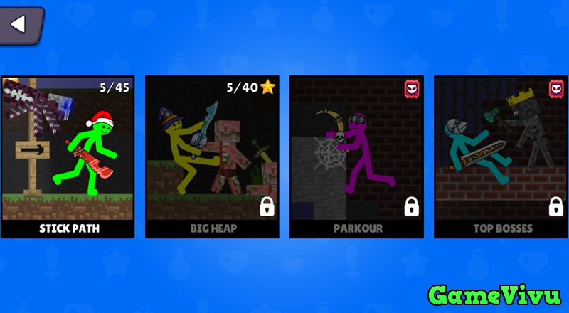 – 4 chế độ chơi hấp dẫn: Stick Path, Big Heap, Parkour và Top Bosses.