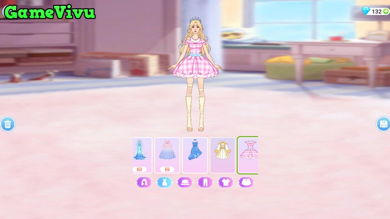 Điều khiển: Sử dụng chuột hoặc thao tác chạm để chọn mẫu, kéo thả chi tiết và chỉnh sửa trang phục theo ý muốn.