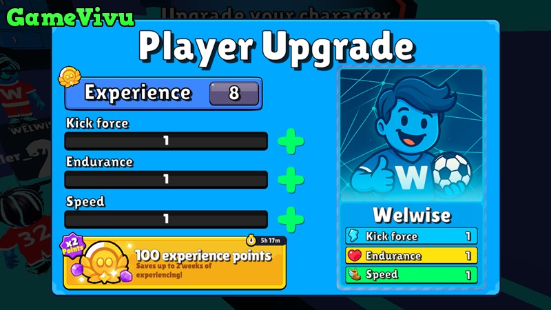 Nâng cấp lực sút, thể lực và tốc độ cho nhân vật của bạn