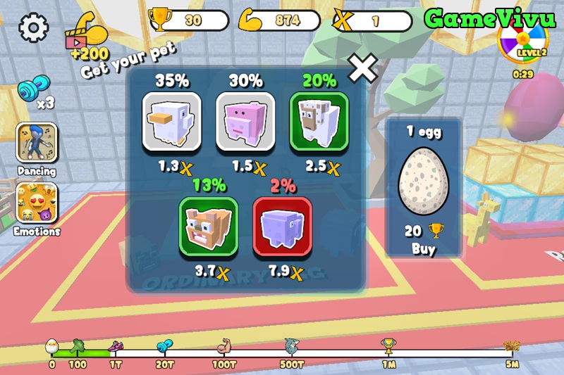 – Thu thập cúp để ấp trứng pet hỗ trợ, tăng chỉ số tập luyện.