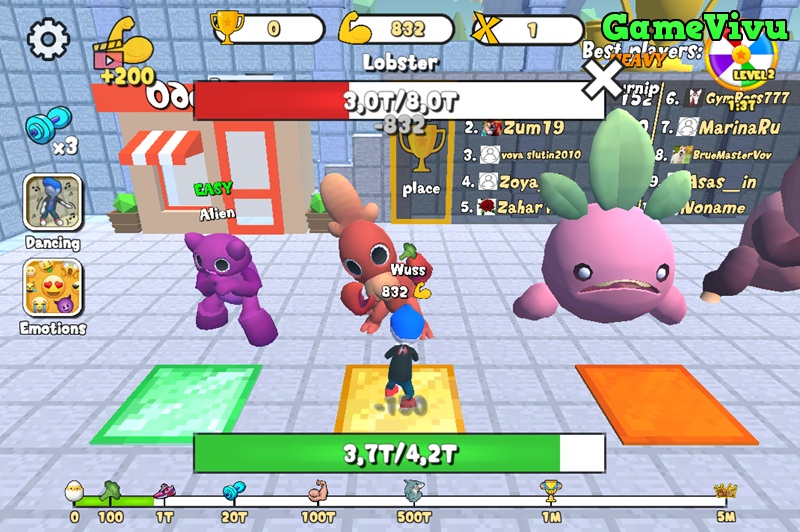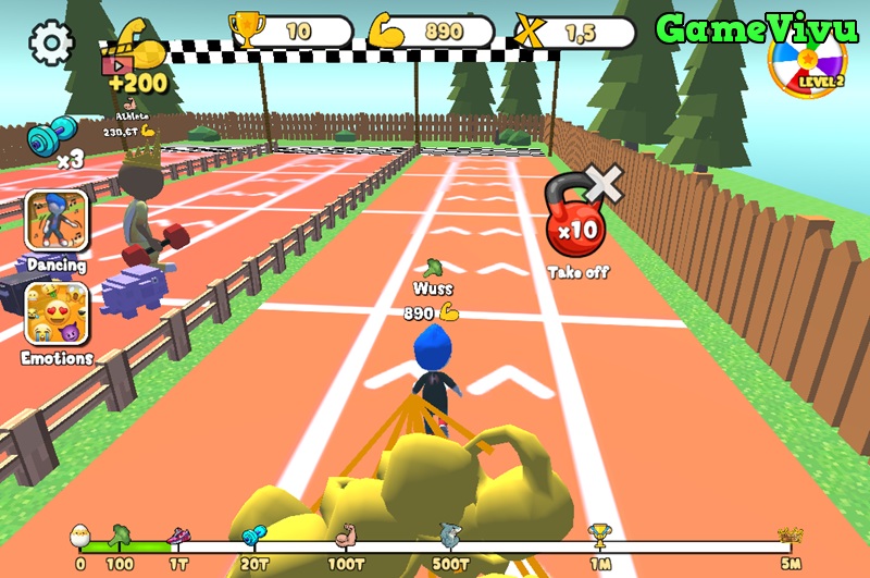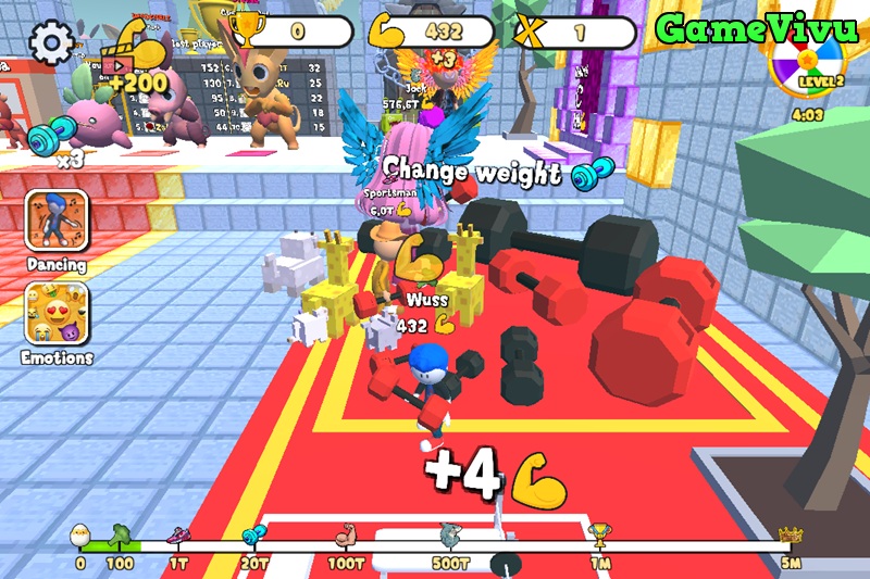 Từ những bài tập thể hình như nâng tạ, kéo tạ, đẩy tạ cho đến chạy bền, mỗi hoạt động đều giúp Obby khỏe mạnh hơn. Khi đạt đến ngưỡng sức mạnh nhất định, bạn sẽ phải đối đầu với các boss khổng lồ, thu thập cúp và cạnh tranh cùng những gymer khác trên bảng xếp hạng.
