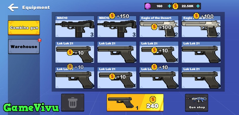 Mua súng và ghép những khẩu súng cùng level để tạo ra súng mới mạnh hơn