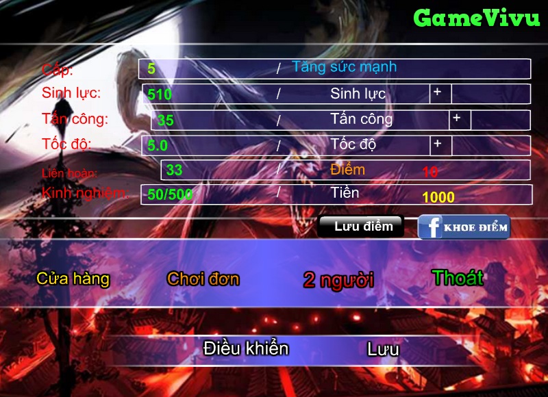 – Người 2: Phím mũi tên để di chuyển, 1 để tấn công, 2 để nhảy, 3 để tốc biến, 4/5/6 để dùng tuyệt kỹ.