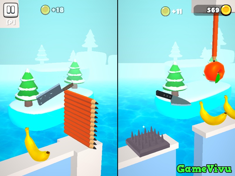 Nhiệm vụ: Điều khiển con dao nhảy và cắt các vật thể trên đường đi, tránh rơi xuống hoặc va vào vật cứng.