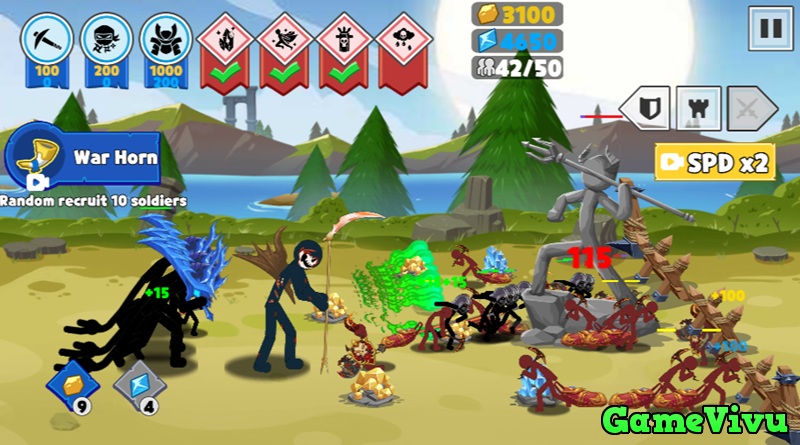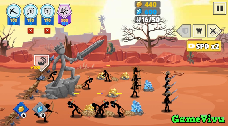 – Nhiều loại binh chủng người que để huấn luyện và nâng cấp.