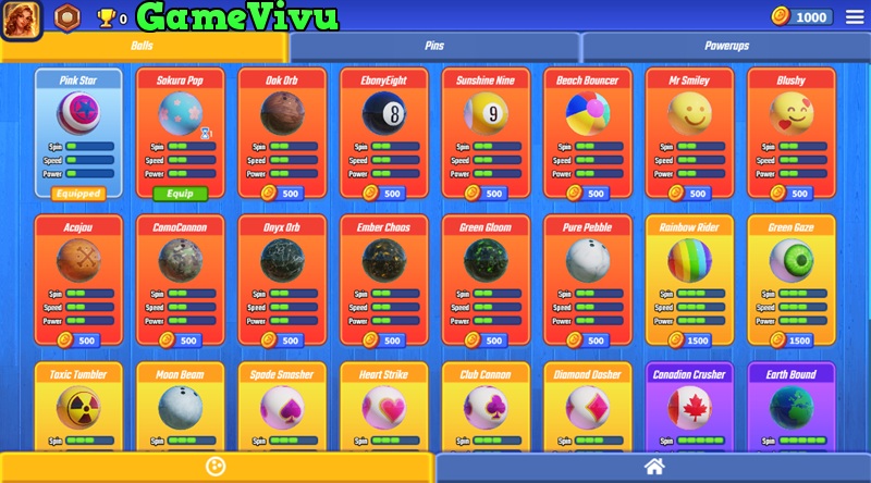 Dùng tiền thưởng để mua những quả bóng bowling và pin mới có chỉ số cao hơn.