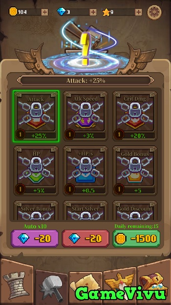 Dùng số tiền bạn kiếm được để nâng cấp sức mạnh cho tòa tháp