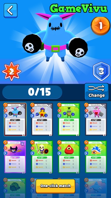 Bạn có thể tùy chọn 15 thẻ bài bất kỳ tham gia vào mỗi trận chiến.