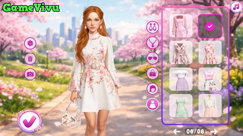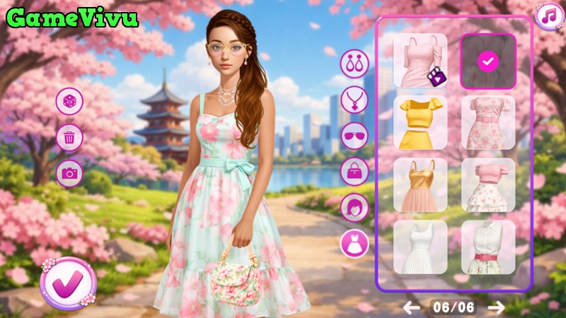 Trong Thời trang hoa anh đào (Celebrity Cherry Blossom Look), bạn sẽ bước vào thế giới thời trang mùa xuân đầy nhẹ nhàng và thơ mộng. Bạn sẽ giúp các ngôi sao chuẩn bị diện mạo hoàn hảo cho sự kiện giữa khung cảnh hoa anh đào nở rộ. Từ những bộ váy bay bổng đến phong cách trang điểm tinh tế, mọi chi tiết đều góp phần tạo nên vẻ ngoài thanh lịch và cuốn hút.