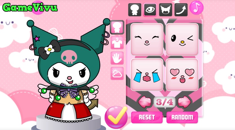 Bạn có thể tùy chọn màu da, biểu cảm khuôn mặt đầy đáng yêu cho Kuromi