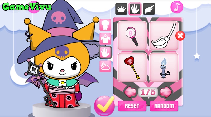 Nhiệm vụ: Sáng tạo nhân vật Kuromi theo sở thích bằng cách lựa chọn trang phục, phụ kiện và phông nền phù hợp.