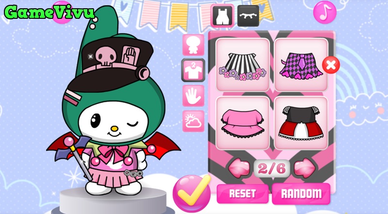 – Trên điện thoại: Chạm trực tiếp vào màn hình để thay đổi và phối đồ cho Kuromi.