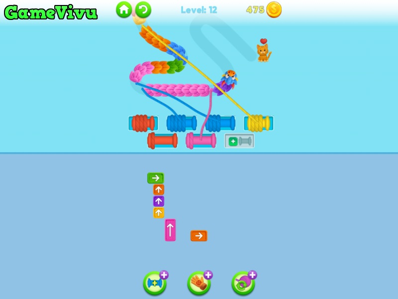 Nhiệm vụ: Tháo gỡ các cuộn len đúng thứ tự để diệt rồng len trước khi nó chạm tới chú mèo con.