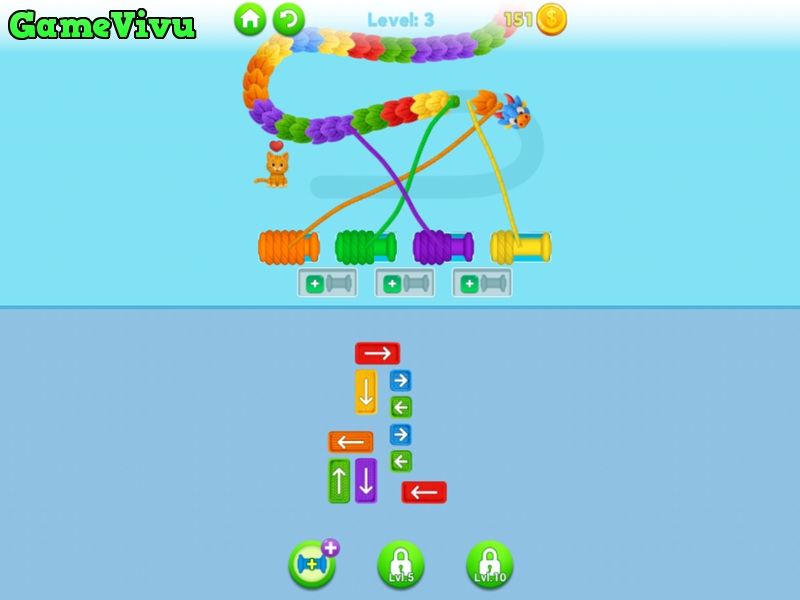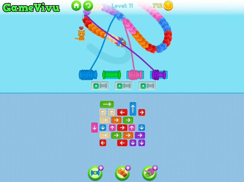 Sử dụng Chuột hoặc chạm màn hình để thao tác trong game. Quan sát các cuộn len ở phía dưới màn hình, chỉ những cuộn không bị cản mới có thể di chuyển.