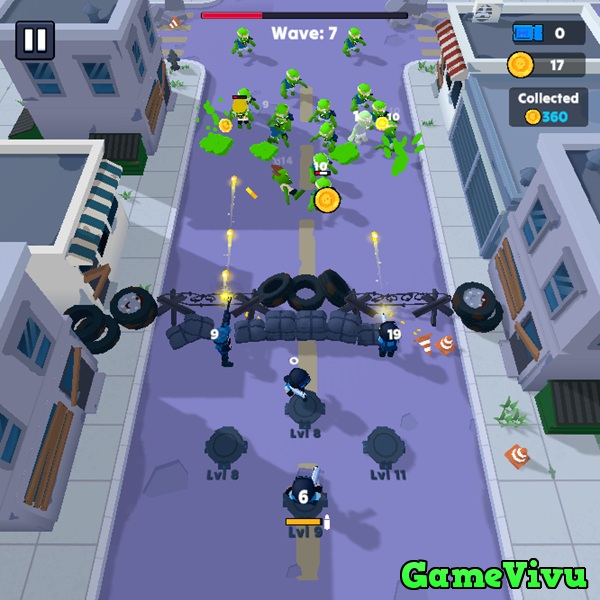 Nhiệm vụ: Tiêu diệt toàn bộ lũ zombie trong mỗi đợt tấn công để bảo vệ căn cứ của bạn.