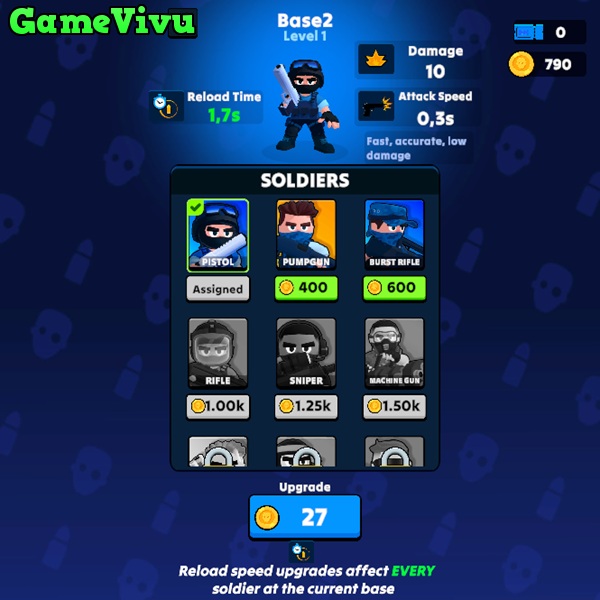 Mua các đơn vị quân lính mới và nâng cấp thời gian nạp đạn