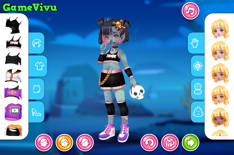 Trò chơi Zombie dễ thương (Kiddo Cute Zombie) là một game thời trang cực kỳ vui nhộn, nơi bạn sẽ được hóa thân thành nhà thiết kế giúp ba cô bé đáng yêu tạo nên phong cách zombie độc đáo. Hãy phối hợp những bộ quần áo ma quái nhưng vẫn ngộ nghĩnh, thêm phụ kiện và kiểu tóc thật cá tính để tạo nên diện mạo hoàn hảo cho buổi hóa trang Halloween đầy sắc màu. Sự sáng tạo của bạn sẽ biến các cô bé thành những zombie dễ thương nhất thế giới!